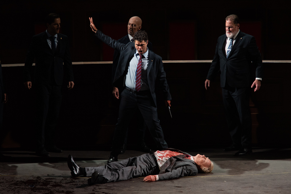 «Parlare del conflitto tra Guelfi e Ghibellini potrebbe non significare granché per il pubblico di oggi» afferma il regista: ma i conflitti sono sempre di attualità nel mondo, anche oggi. Noble è stato un affermato regista di prosa: memorabili sono stati suoi spettacoli per la Royal Shakespeare Company. Meno numerosi i suoi allestimenti di opere liriche, ma molto apprezzate le regie televisive di registrazioni di spettacoli dal vivo. Qui egli sceglie di ambientare la vicenda negli anni ’30, un’epoca di società chiuse in cui nascono conflitti che sfoceranno nelle dittature che conosciamo. Nella sua messa in scena non c’è alcun richiamo al Fascismo, ma le cupe scenografie disegnate da Tobias Hoheisel si rifanno alla severa linearità di certe architetture piacentiniane qui riproposte in una loro incombente claustrofobicità. Efficaci sono anche i costumi di Petra Reinhardt.