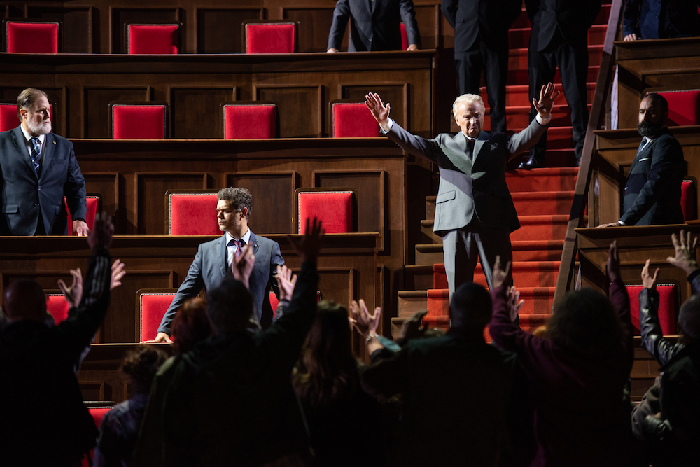 Che sono comunque Lisette Oropesa e Marianne Crebassa, due tra le più acclamate cantanti della scena internazionale. La prima debutta in un ruolo belliniano che è comunque nel solco delle scelte belcantistiche del soprano americano, il quale sfoggia una linea di canto purissima, timbro incantevole, mezze voci e legati perfetti e un’emissione omogenea nel passaggio nei vari registri, con acuti affrontati con agio e gravi sonori. Il personaggio viene così magnificamente caratterizzato nella sua dimensione tragica di contrasto tra l’amore/dovere verso il padre e quello romantico/sensuale per il giovane della casata nemica. Gloriosamente delineato è anche il Romeo della Crebassa, che impegna la sua apprezzata vocalità per esprimere un ruolo che Bellini ha considerato il più impegnativo dell’opera, affidandolo appunto alla diva indiscussa dell’epoca, Giuditta Grisi. Dalla marziale cabaletta del primo atto, all’addio finale è tutto un gioco di slanci ed esitazioni reso con grande sensibilità dal mezzosoprano francese. Autorevole come sempre e perfettamente immerso nella parte è Michele Pertusi, il confidente di Giulietta. La recitazione è un tutt’uno con l’espressione musicale e ci si rammarica che Bellini gli abbia concesso una parte così vocalmente ridotta. Ottima prova la fornisce Jinxu Xiahou (Tebaldo) sia per quanto riguarda la vocalità vera e propria sia per la dizione, che è talvolta un problema per i cantanti cinesi. Timbro e fraseggio sono del tutto convincenti, fiati e acuti perfettamente realizzati e il personaggio intrinsecamente antipatico del duplice avversario – in politica e in amore – risulta invece piacevolmente efficace. Cavernosa e anche povera di armonici, la voce di Jongmin Park non riscatta la parte del cattivo, Capellio, il responsabile insensibile di tanto dolore.